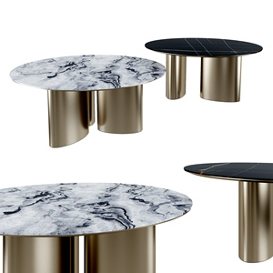 现代圆形大理石金属餐桌