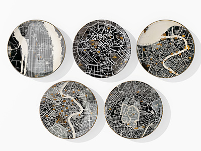现代新中式圆形盘子地图装饰画,挂画