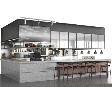 现代小吃快餐店操作台吧台