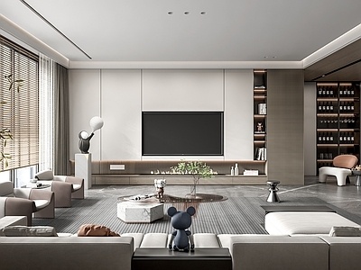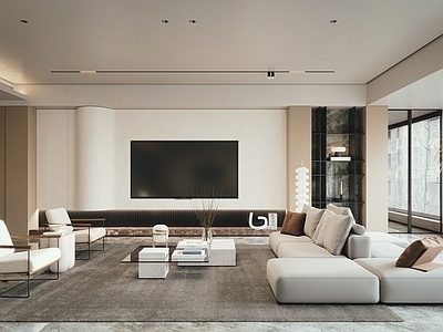 现代极简客厅沙发饰品摆件电视墙