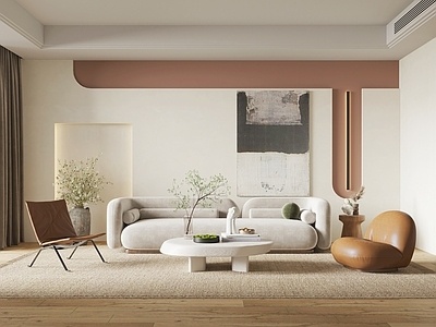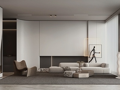 极简客厅空间背景墙沙发组合摆件