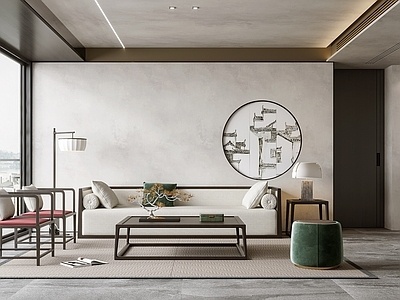 新中式家居客厅茶几沙发背景墙