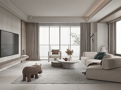 现代客厅_沙发茶几组合_休闲椅_窗帘_玩具