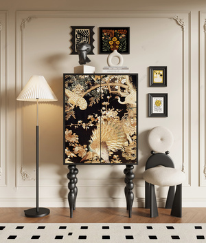 法式橱柜法式中古风装饰柜挂画,落地灯3D模型