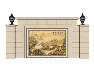 欧式景墙,影壁墙背景墙壁灯su模型