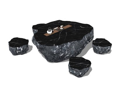 02黑山石石桌石凳石材户外茶桌椅茶台
