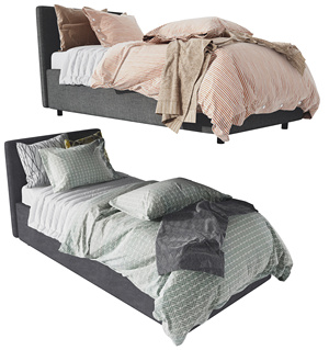 现代布艺单人床
