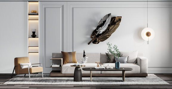 现代沙发茶几组合,单人椅子,树叶挂饰挂件