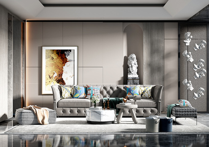 现代沙发转角沙发茶几
