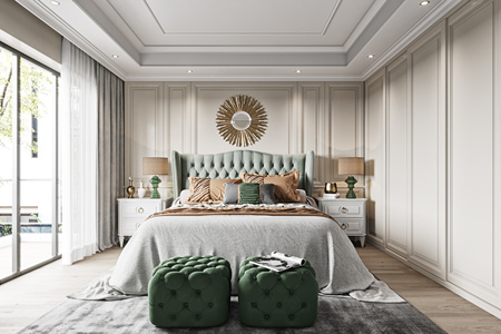 现代卧室,双人床,