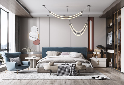 13现代卧室,双人床,衣柜,床头柜