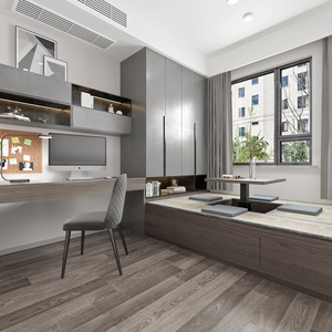 现代loft榻榻米书房,卧室显示器,书柜,台灯