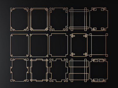 新中式花格线条脚线,圈边,边线花边