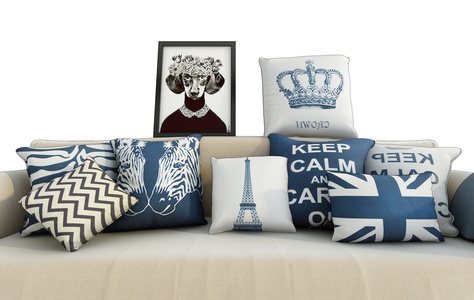 H05-0916现代布艺动物图案抱枕装饰画组合