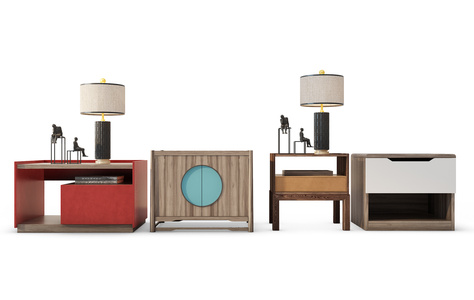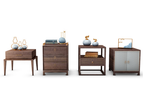Z05-0802新中式实木床头柜摆件组合