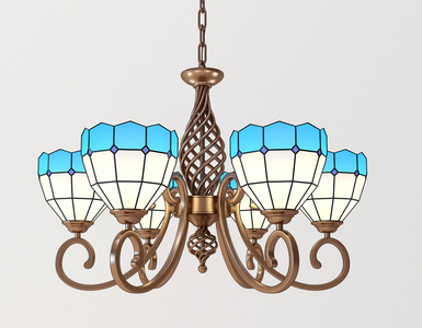 Z27-0304地中海欧式美式铁艺彩绘玻璃吊吊灯