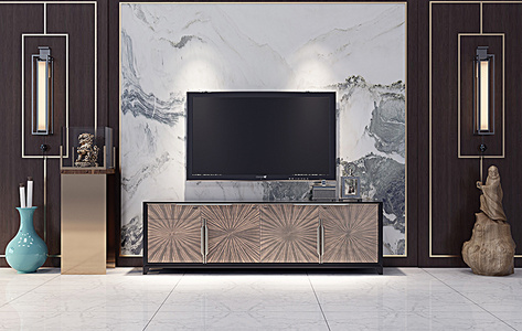Z02-0117新中式电视柜狮子佛像摆件壁灯