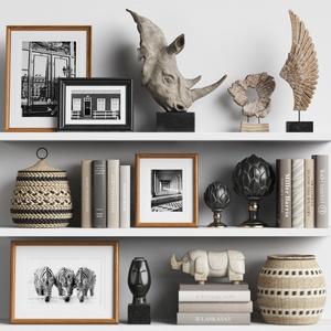现代书籍装饰画翅膀犀牛雕塑摆件