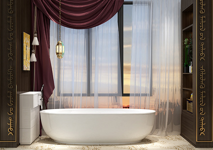 H01-0114现代浴缸窗帘蒙古花纹组合