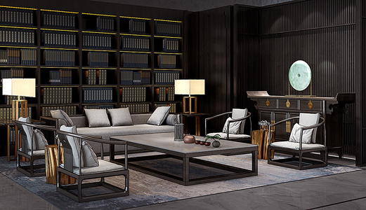 H04-0114新中式沙发茶几书柜玄关柜台灯圈椅