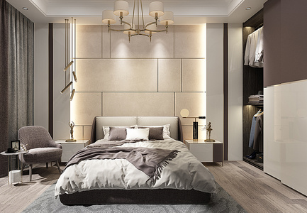 H07-0114现代轻奢卧室床床头柜衣柜休闲椅边几