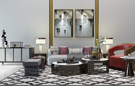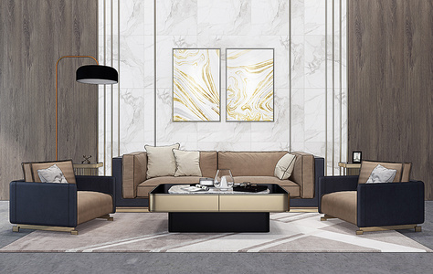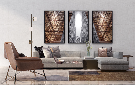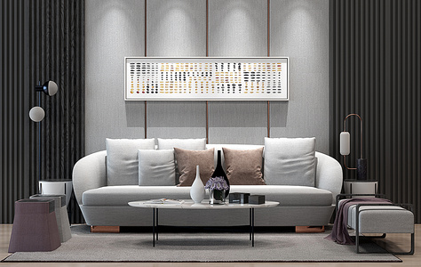 H28-0107现代沙发茶几落地灯挂画组合