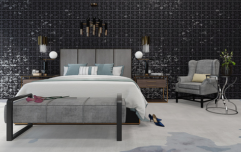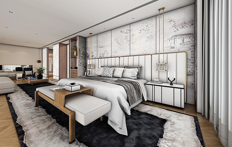 H05-0122无间设计新中式主卧室客房床床头柜
