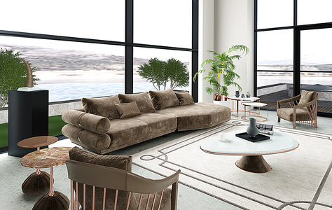 H06-0122意大利LONGHI品牌现代沙发茶几边几客厅组合