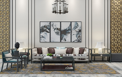H02-0115新中式沙发茶几立体画摆件饰品
