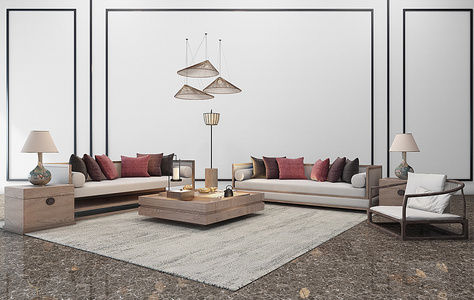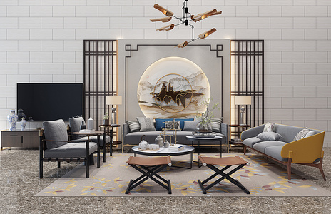 H17-0116新中式沙发茶几电视柜沙发背景墙饰品摆件