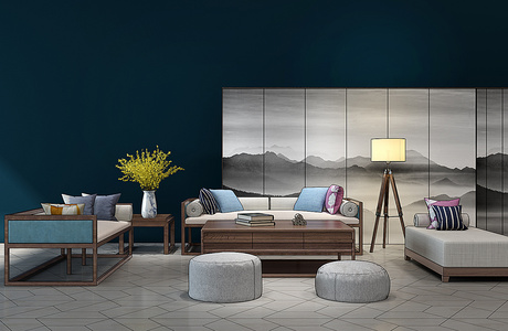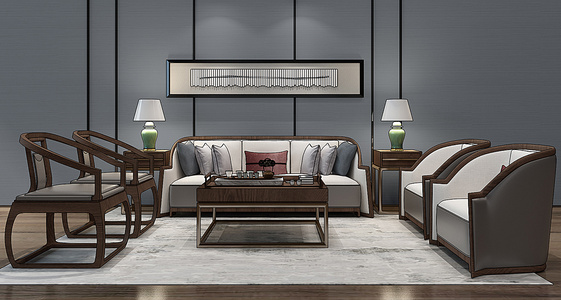 H18-0112新中式沙发茶几台灯组合