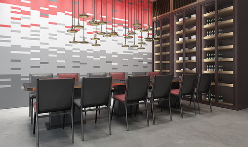 H11-0112现代酒柜餐厅餐桌椅吊灯组合