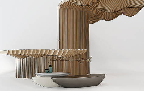 H15-0112现代服务台木隔扇造型吊灯