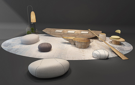 H16-0112新中式休闲公共座椅船座椅船桨懒人沙发