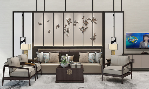 H20-0112新中式沙发电视柜组合
