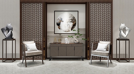 H13-0105新中式边柜玄关柜单椅摆件