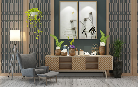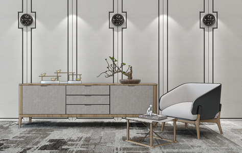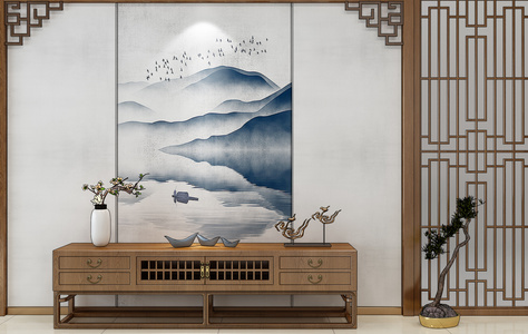 H21-0102新中式东南亚电视柜休闲椅花盆摆件挂画