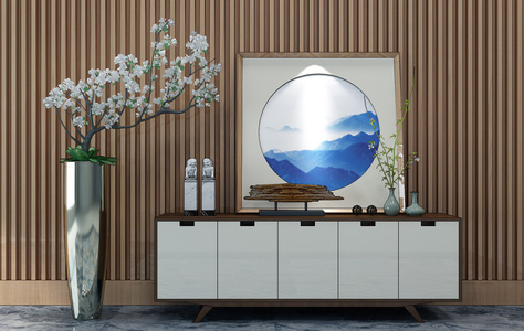 H23-0102新中式电视柜装饰柜花瓶植物盆栽摆件