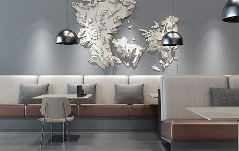 H03-0104现代餐饮空间卡座墙饰