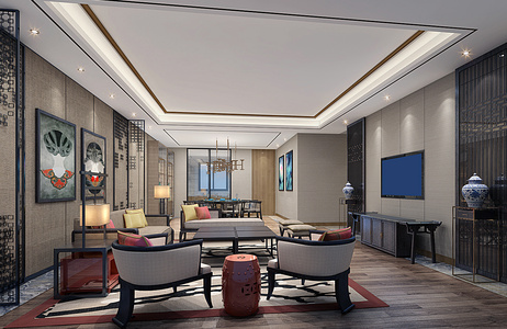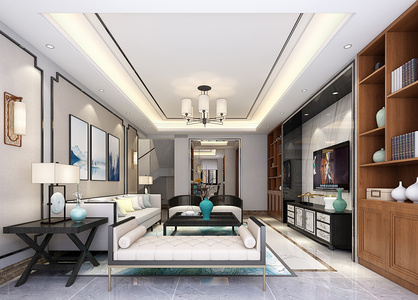 Z02-0107现代中式新中式客厅新中式沙发茶几将军罐