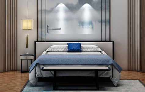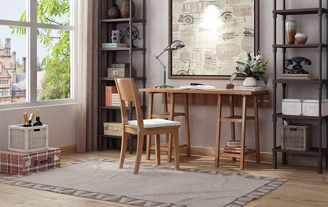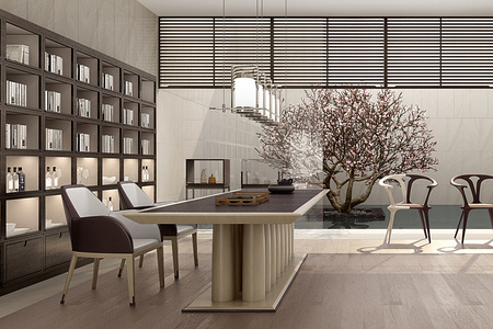 Z03-0107现代中式新中式书房樱花书桃树中式椅子
