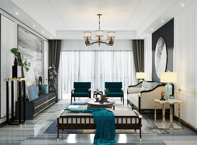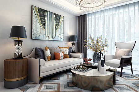 Z04-0107香榭蒂设计 现代(爱马仕风)新中式沙发茶几台灯
