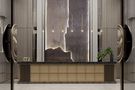 Z08-0107新中式售楼处前台接待盆景中式门拉手