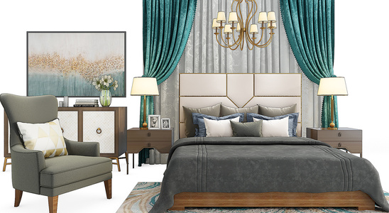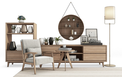 H14-0913现代实木电视柜边柜休闲椅圆几落地灯摆件组合
