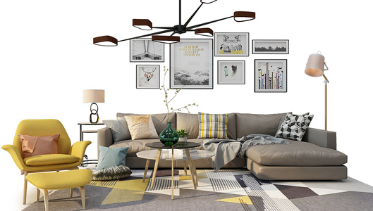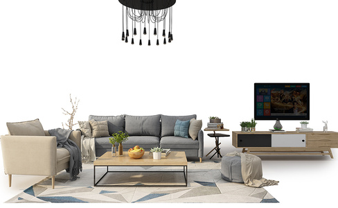 Z01-0920现代沙发茶几吊灯小墩