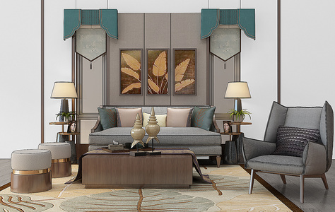 Z11-1221东南亚泰式沙发茶几台灯装饰画