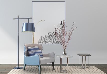 H48-1213现代布艺休闲沙发椅边几落地灯装饰画组合