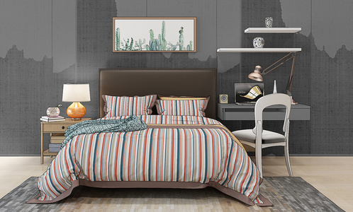 H15-1221北欧床床头柜写字台