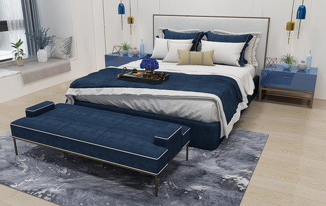 H13-1221现代卧室现代床沙发茶几圆几边几