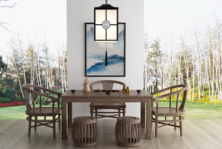 H32-1212新中式茶桌椅圈椅吊灯